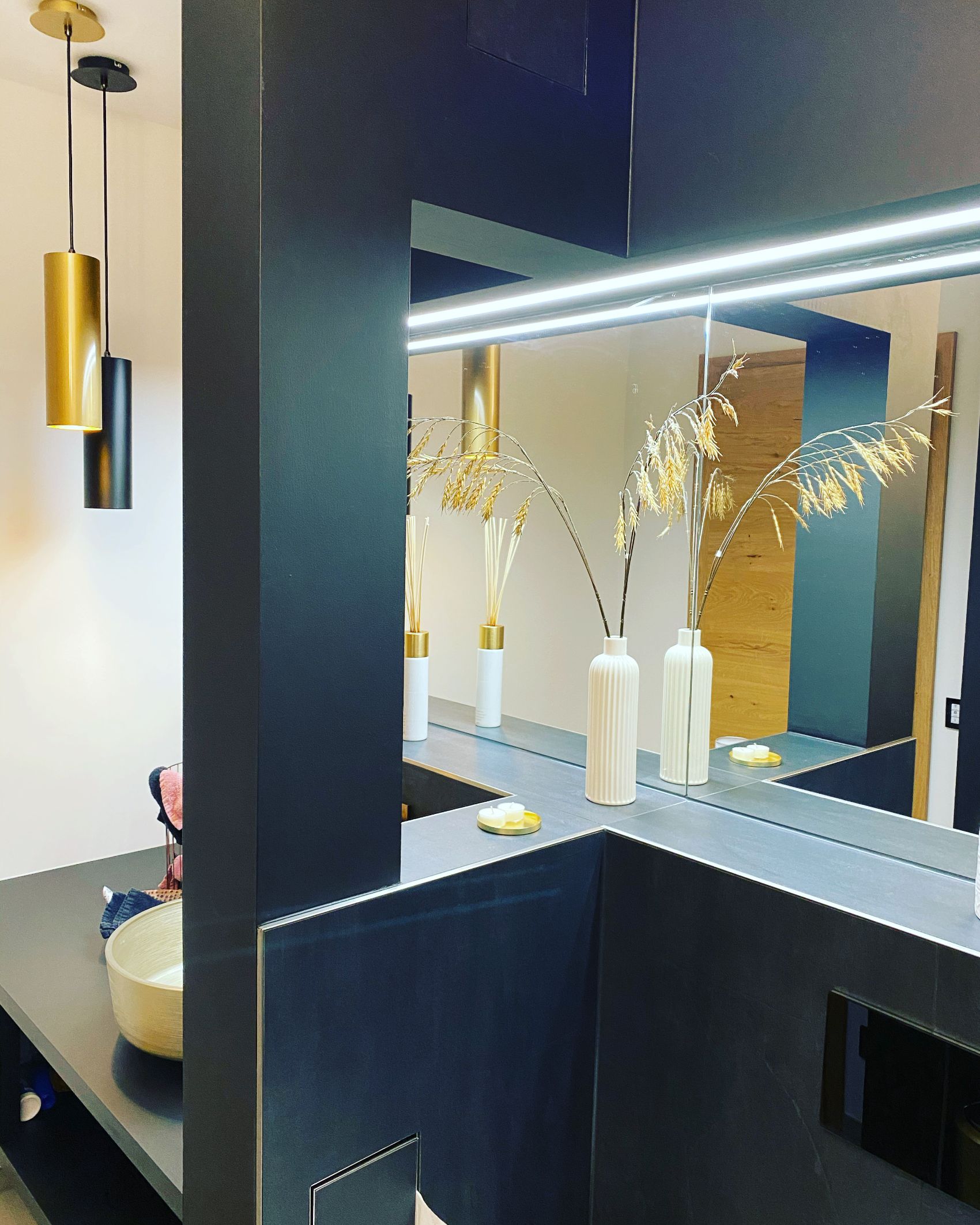 Das Gäste-WC ist oft der kleinste Raum im Haus – und gleichzeitig der Raum, den alle Besucher sehen. Genau deshalb wurde dieses Projekt in Abensberg bewusst mutig, hochwertig und bis ins kleinste Detail durchdacht umgesetzt.