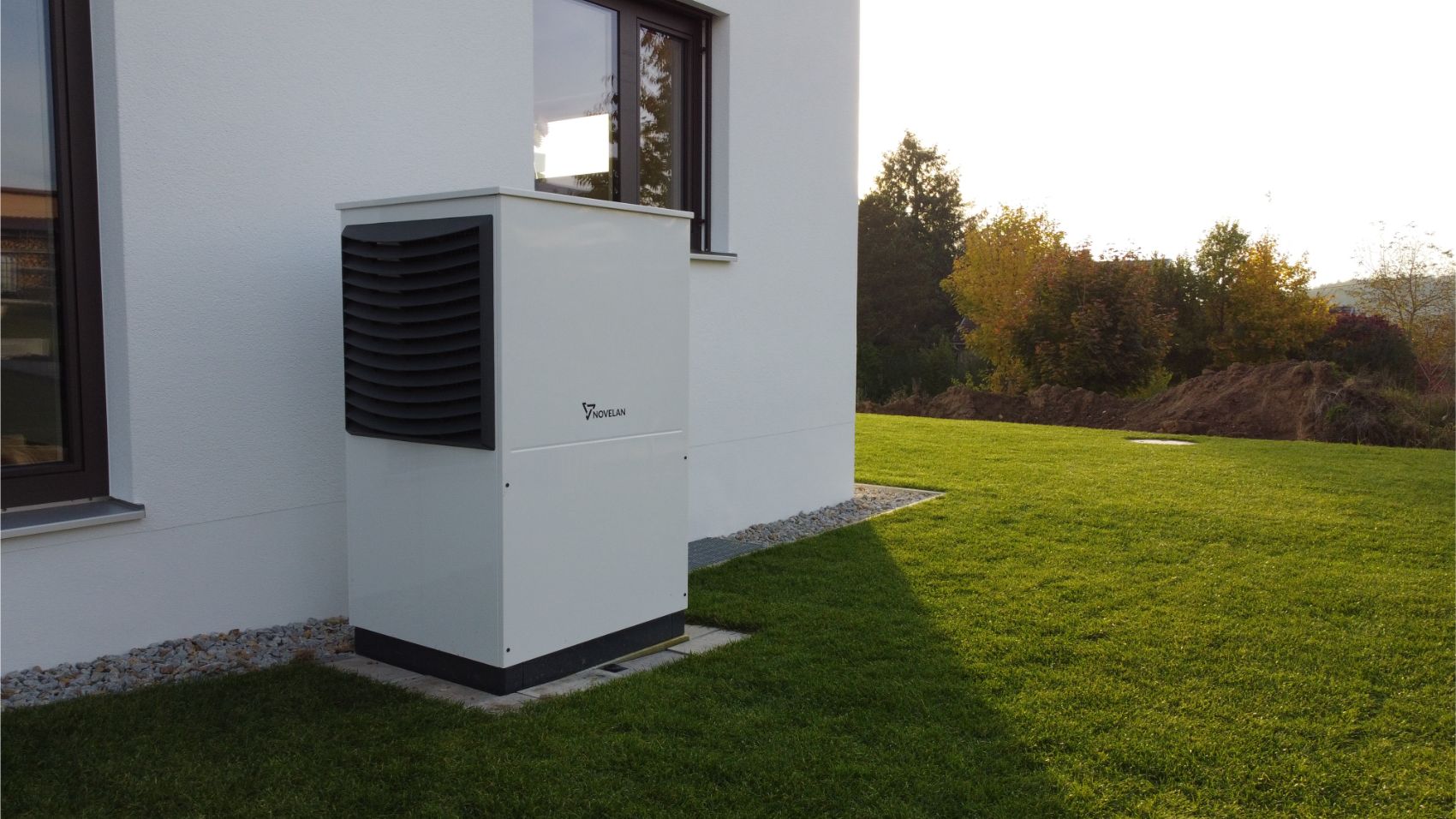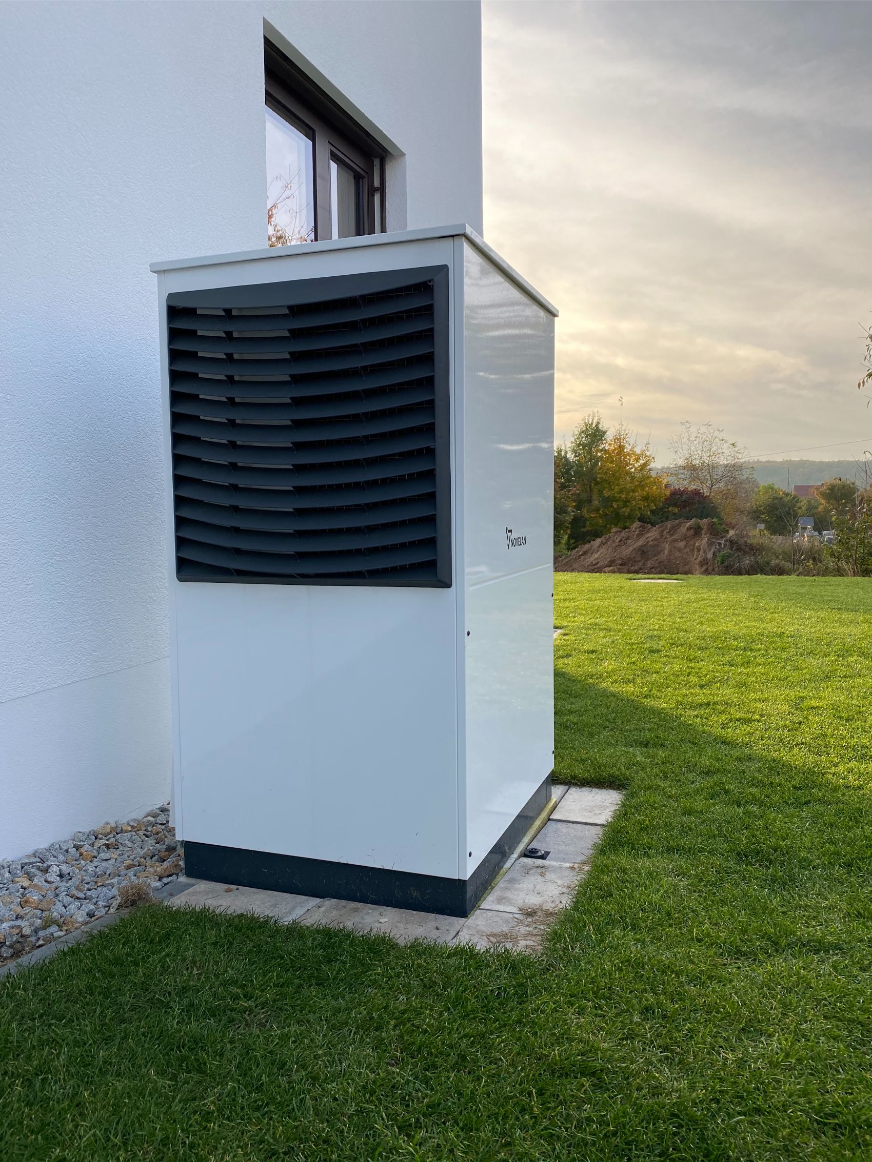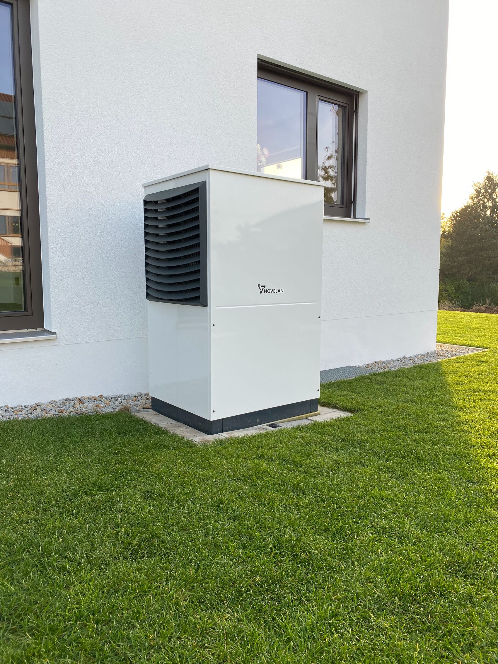 Zum Einsatz kam eine Wärmepumpe der Firma Novelan in Kombination mit einer zentralen Lüftungsanlage – ergänzt durch ein leistungsstarkes Photovoltaik- und Speichersystem.