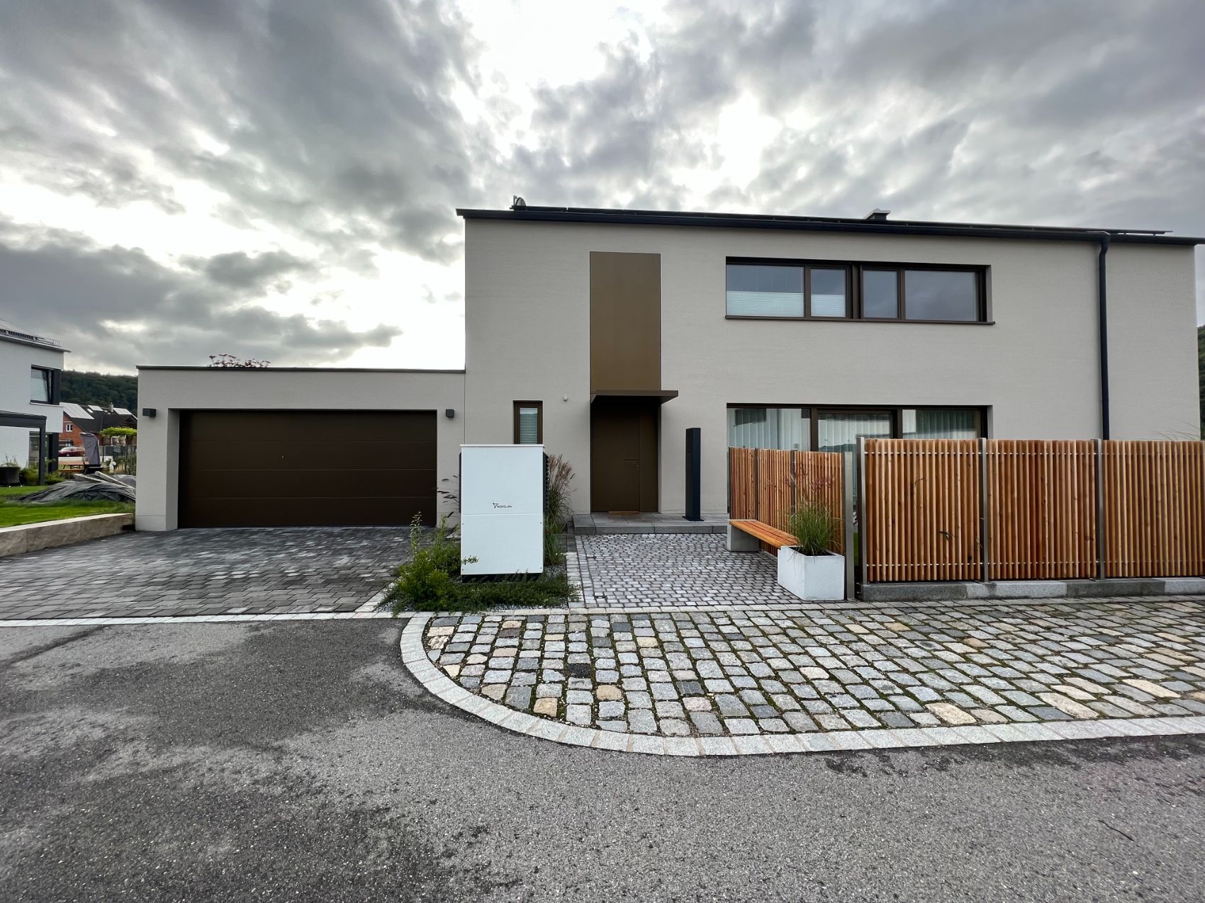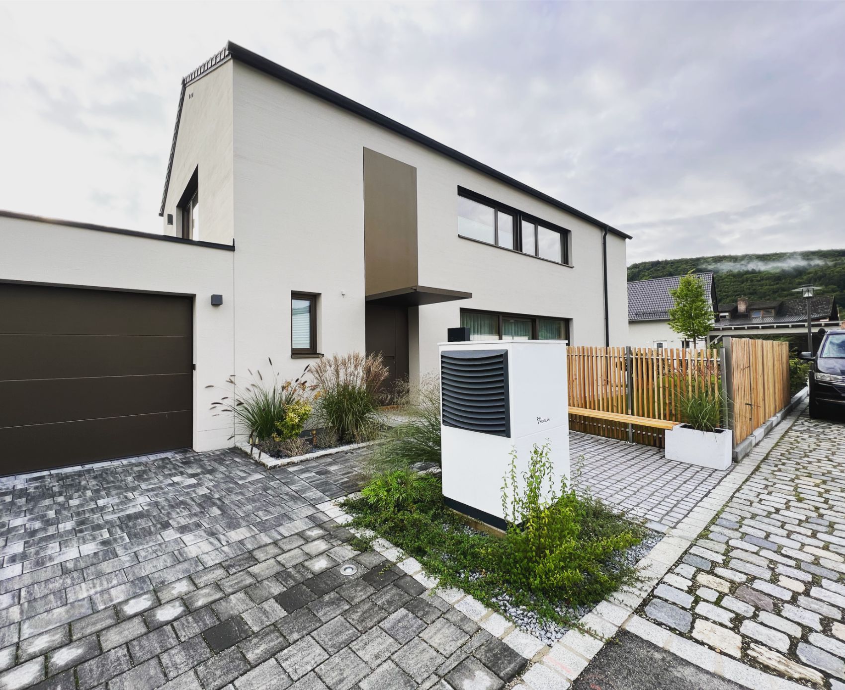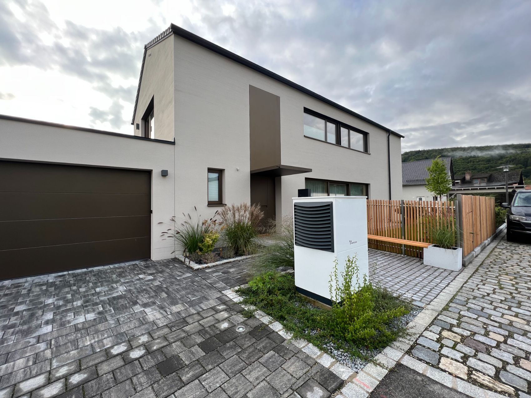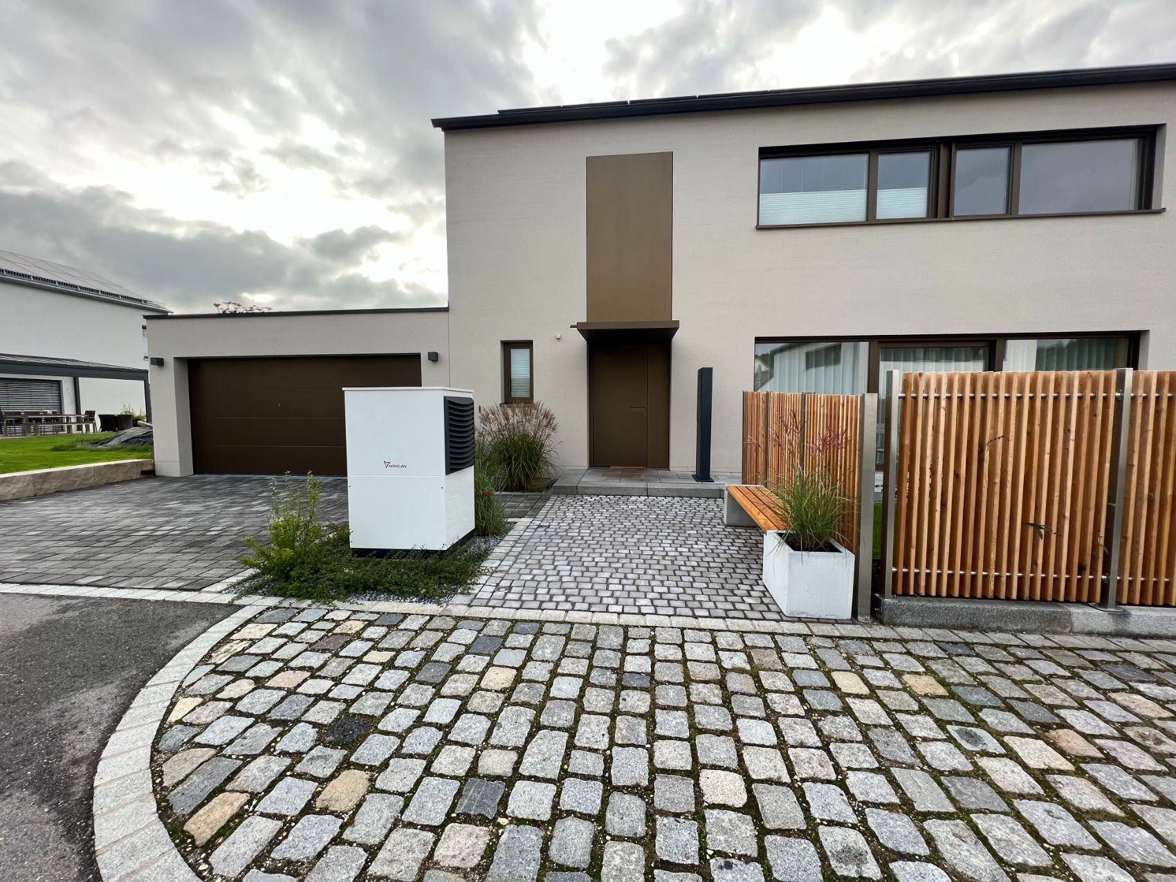 Zum Einsatz kam eine hochwertige Wärmepumpe in Kombination mit einer zentralen Lüftungsanlage – perfekt abgestimmt auf die Anforderungen eines modernen Neubaus.